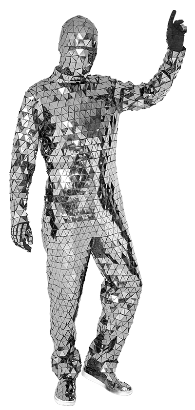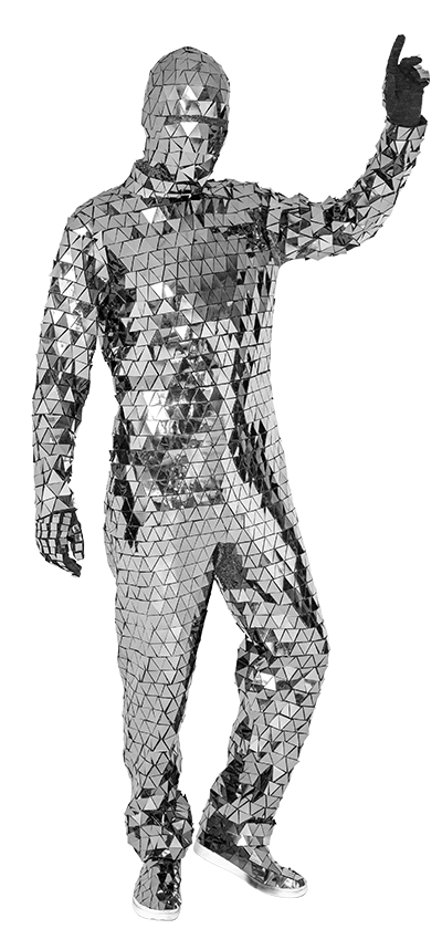 Роскошный дизайн: Костюм полностью покрыт зеркальными элементами, создающими эффект ослепительного сияния и отражающими свет, что делает вас настоящей звездой мероприятия.