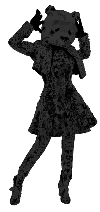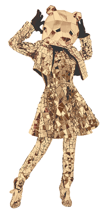 Очаровательный дизайн: Костюм полностью покрыт зеркальными элементами, создающими яркий блеск и эффектные отражения. Образ Пандочки добавляет мягкости и миловидности.
